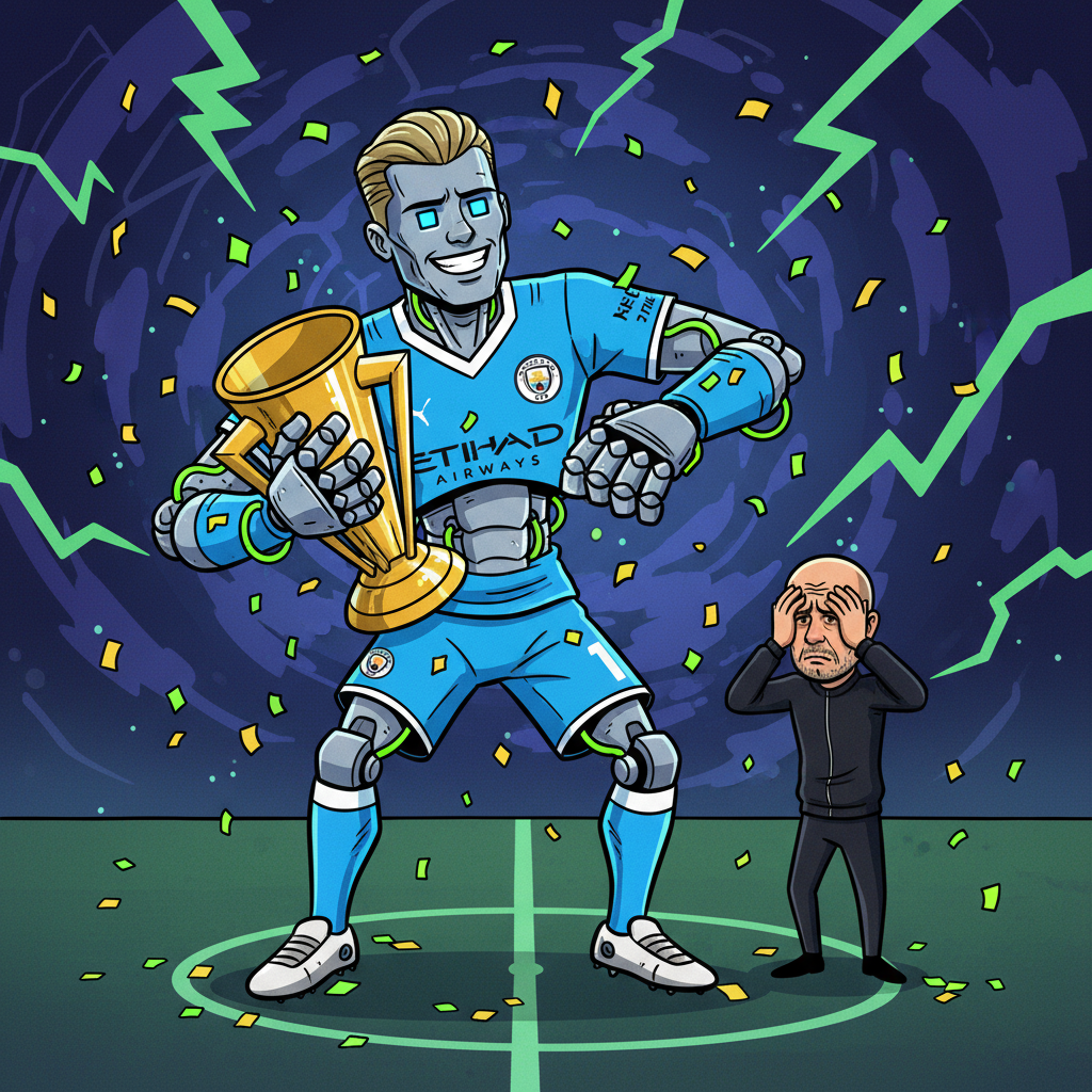 Kevin De Bruyne looked embarrassed for him. Pep Guardiola was covering his eyes like he was watching a penalty shootout. Even the cameraman seemed confused about whether to keep filming or call for medical assistance.