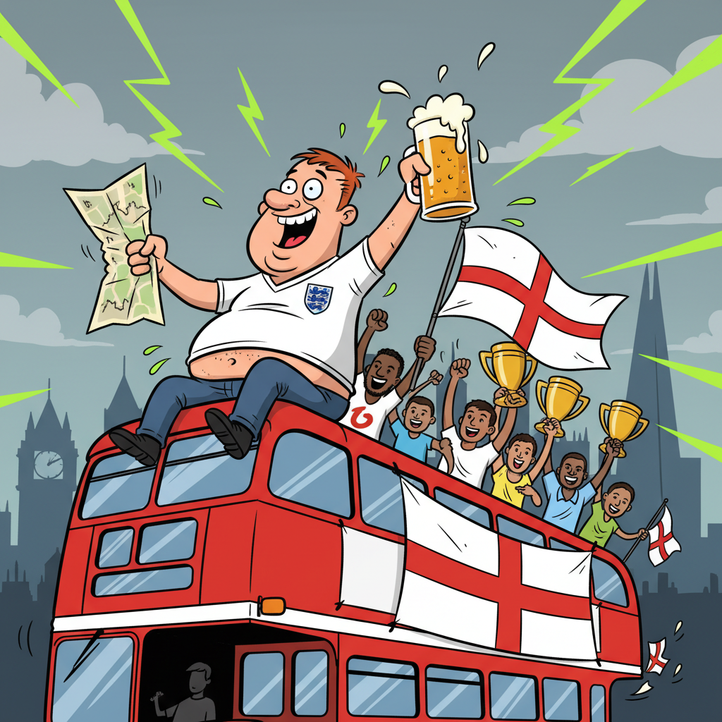 Sources suggest England fans are already planning World Cup victory celebrations after beating Japan 3-1 in a friendly. Dave from the pub has mapped out the parade route.